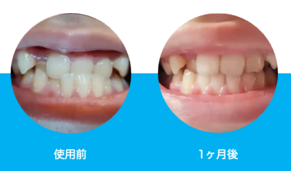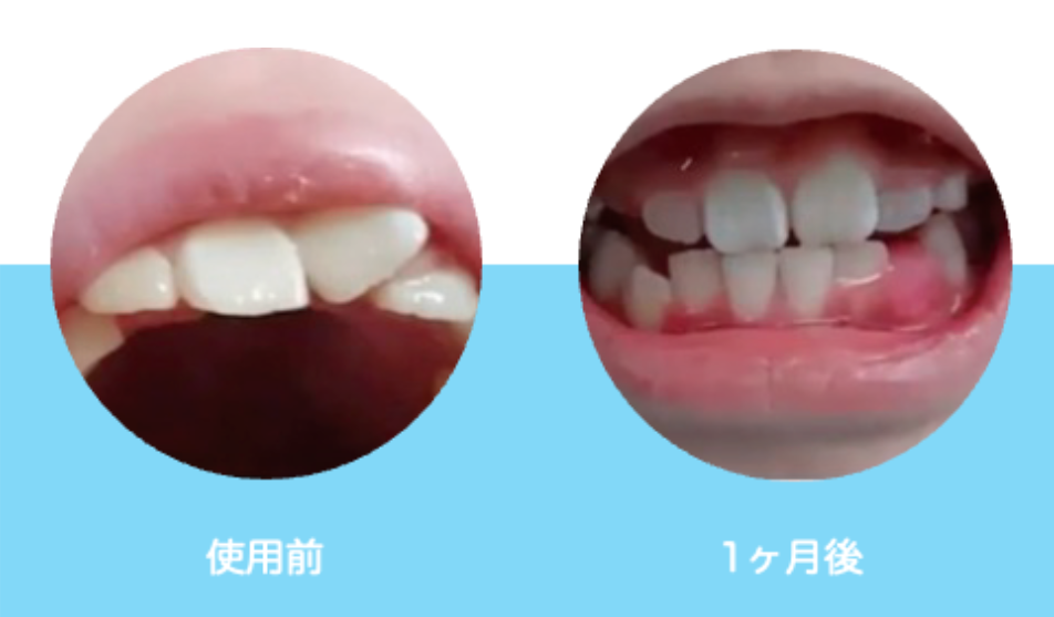 *使用前には下の歯が上の歯よりも前にあった(受け口だった)のが、マウスピース369を使用して1ヶ月で歯並びが変わり、受け口が改善された